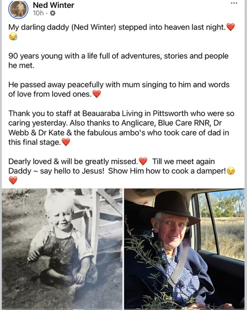 | AUSTRALIA'S ORIGINAL AND BEST CAMP OVEN AND OUTDOOR COOKING AND CAMPING FORUM › General Chat Area › Let's Chew The Fat › RIP Ned Winter |